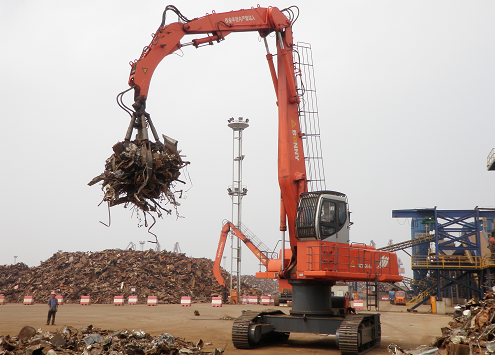 ●可以選擇配備多種工作裝置(抓斗)實現(xiàn)廢鋼、圓木、木屑、原煤、草料等多種物料的抓取、裝卸