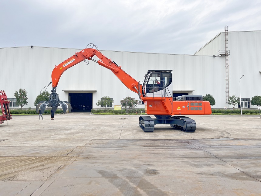 ●可以選擇配備多種工作裝置(抓斗)實現(xiàn)廢鋼、圓木、木屑、原煤、草料等多種物料的抓取、裝卸